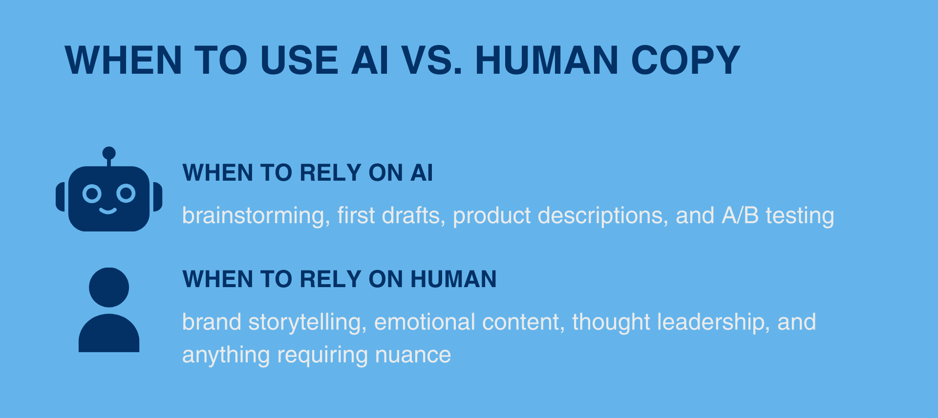 The smartest move? Use AI strategically, not blindly. Let it save you time, but make sure your human touch keeps the copy true, creative, and compelling.