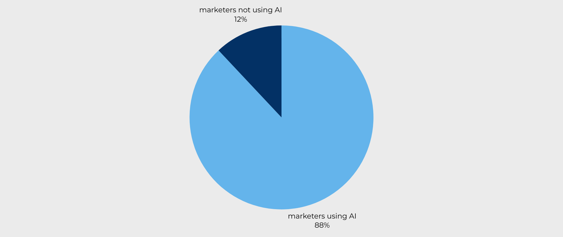 According to SurveyMonkey research, 88% of marketers now rely on AI in their roles, with 93% using it to generate content faster.